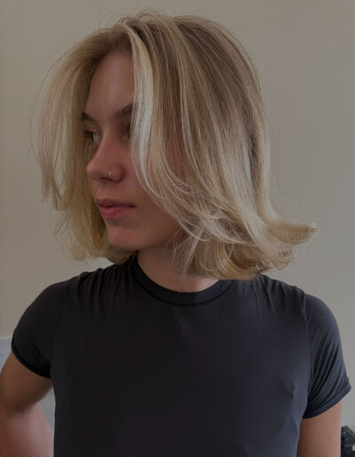 I specialize in lived-in color, dimensional blending, gray coverage, and corrective work, always with your hair’s health in mind.